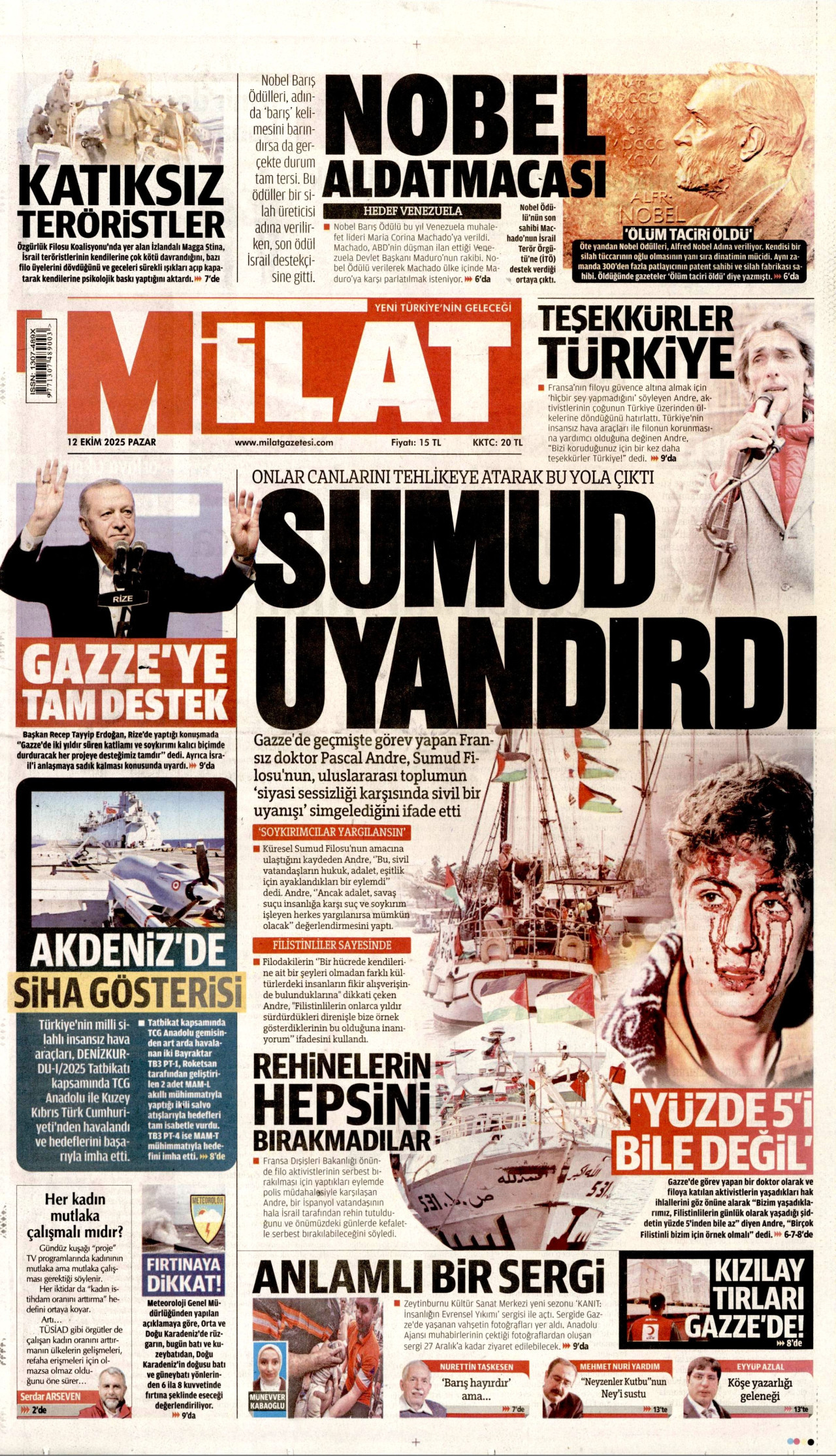 MİLAT Gazetesi 12 Ekim 2025, Pazar Günü Manşeti