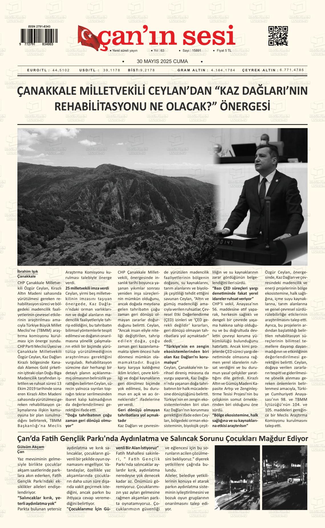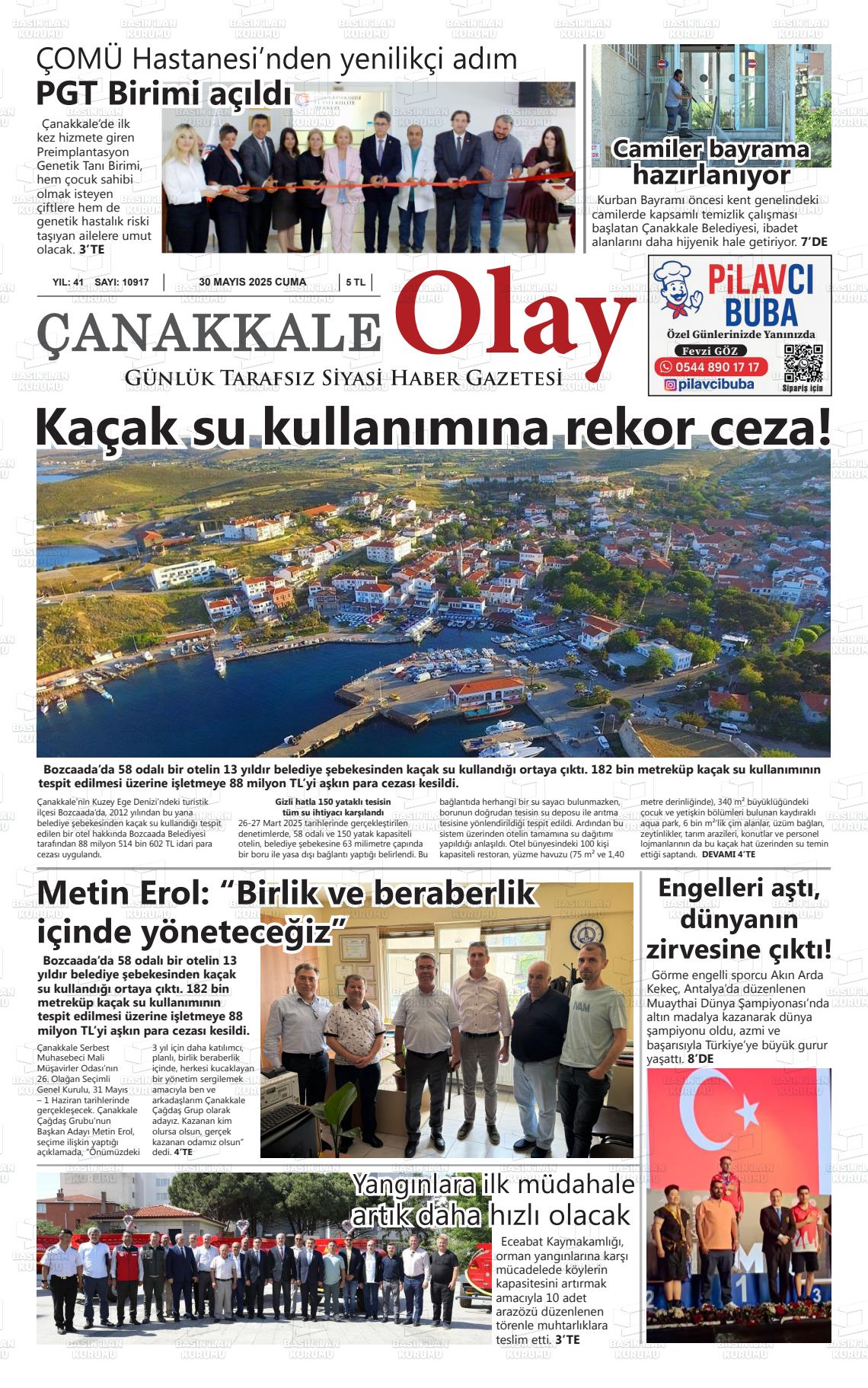 Çanakkale Yerel Gazeteleri 18 Mart 2026, Çarşamba Günü Manşeti