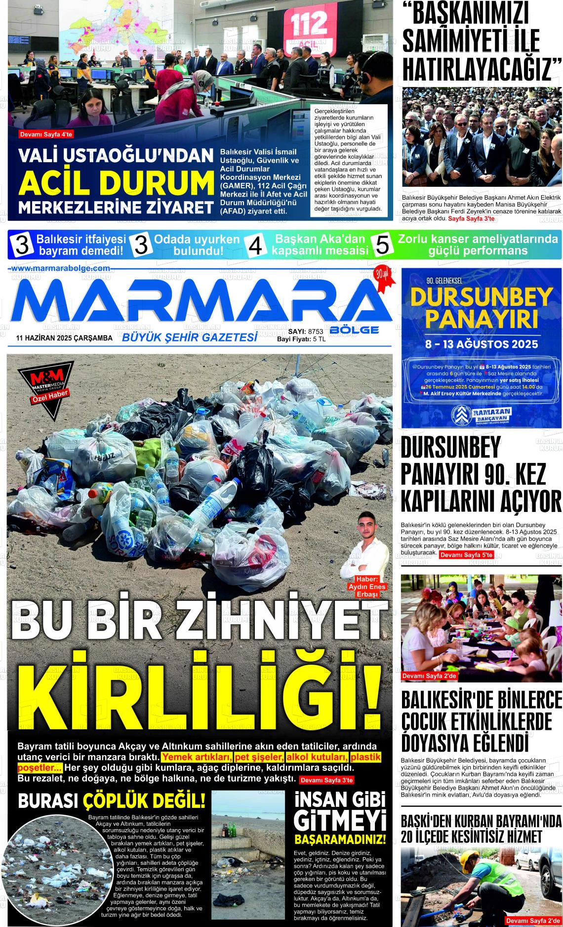 Balıkesİr Yerel Gazeteleri 19 Mart 2026, Perşembe Günü Manşeti