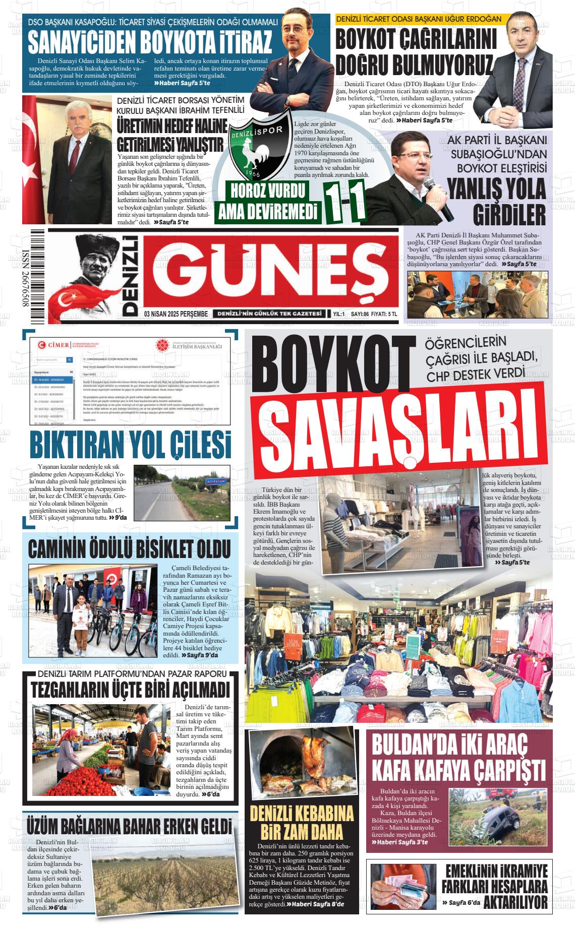 Denİzlİ Yerel Gazeteleri 18 Mart 2026, Çarşamba Günü Manşeti