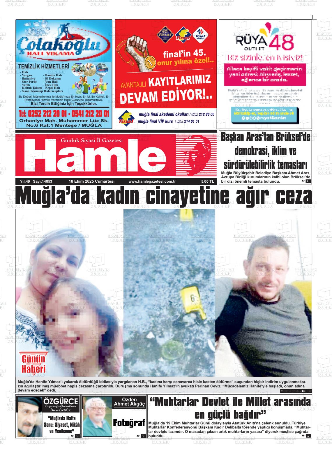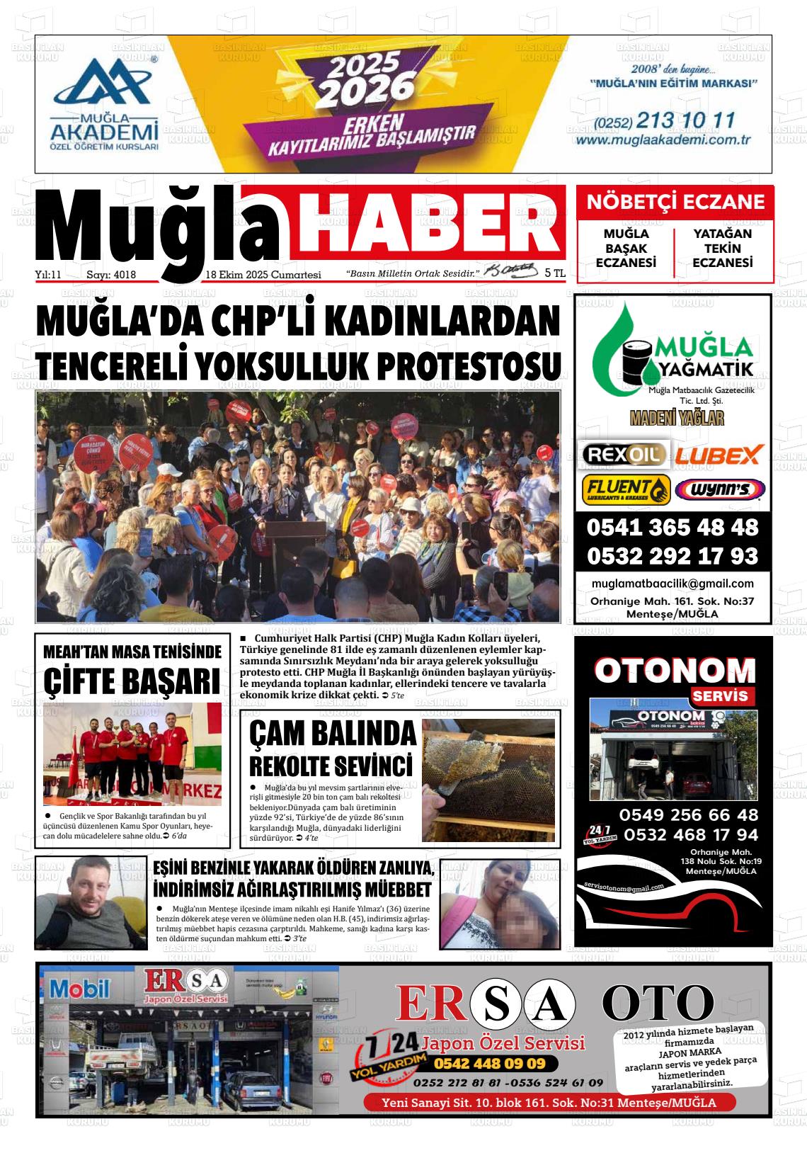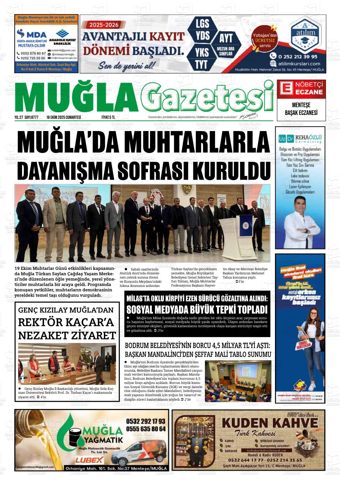 Muğla Yerel Gazeteleri 18 Mart 2026, Çarşamba Günü Manşeti
